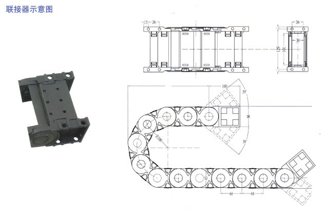 TZ38系列 型號(hào) 內(nèi)腔(高X寬) 外腔(高X寬) 彎曲半徑(R) 節(jié)距 不支撐長(zhǎng)度(M) 型式 38.100 38x100 66x129 100 68 15 上下蓋均可開,滾輪橋式,滾輪全封閉