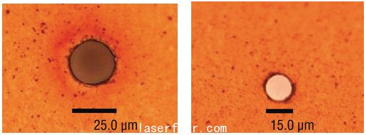 Spectra-Physics激光加工FPC通孔的細(xì)節(jié)特征,入口(左),出口(右)。