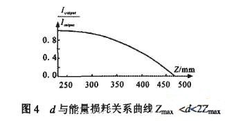 時(shí),出射光束的能量僅為原來的93.886%。出射光束與入射光束能量相對(duì)值與間隔d的關(guān)系如圖4所示。