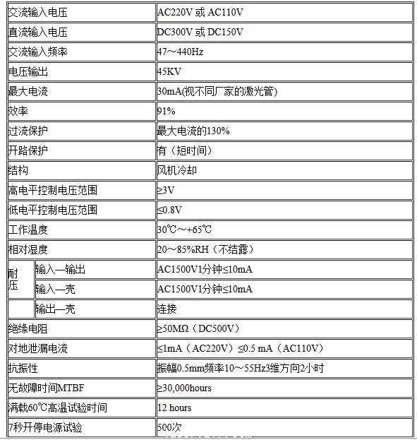 電源具有開路保護功能:在保護接地良好的情況下,電源可以短時間工作于開路狀態(tài),這樣可以避免因激光管爆裂造成激光電源的損壞。