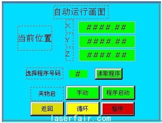 如上圖,“夾物啟”位置就是顯示目前程序所執(zhí)行的步驟,本界面也可以通過讀取程序按鍵來選取工藝程序。目前該程序在設(shè)備上運行穩(wěn)定,用戶滿意。已經(jīng)將原有PLC編寫的程序完全替換掉。