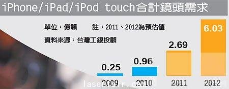 今年光學(xué)鏡頭廠之所以打破原來各占山頭的生態(tài),最主要的關(guān)鍵是因?yàn)樘O果龐大的訂單量,已讓主攻智能手機(jī)戰(zhàn)場的大立光與玉晶光產(chǎn)能忙得焦頭爛額,光是一支iPhone今年出貨量年增率就高達(dá)七成,更遑論iPad的龐大需求。