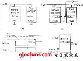 圖7 電源監(jiān)視IC電路及時(shí)序圖?  a.一般用法b.具有雙向RESET引腳時(shí)的用法? c.時(shí)序圖d.引腳圖