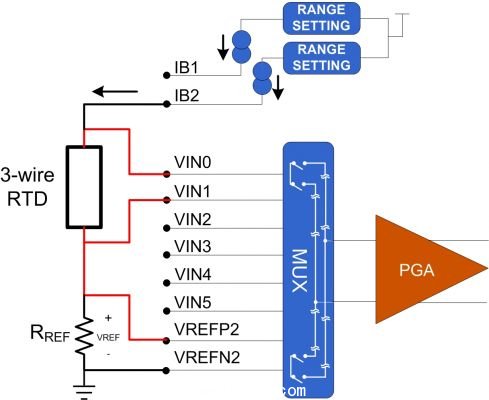 LMP90100的3線RTD配置