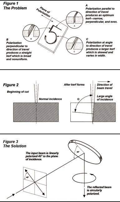 反射式相位延遲鏡金屬切割和其他重要的激光加工對(duì)切縫寬度或橫截面發(fā)生的任何變化都很敏感。切縫的質(zhì)量取決于相對(duì)于切割方向的光偏振方向。如圖 1所示。