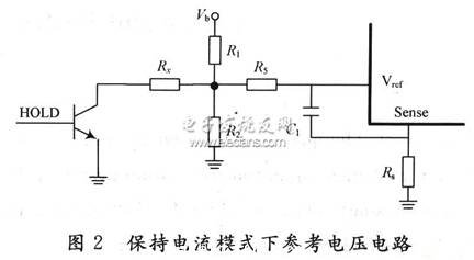 其中外部三極管可以改變分壓比,使參考電壓Vref發(fā)生變化,從而減小輸出電流。此時的Ihold由電阻R1,R2,Rx,Rs以及電壓Vb共同決定: