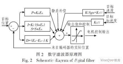 數(shù)字伺服濾波器是指系統(tǒng)的閉環(huán)控制與調(diào)節(jié)采用數(shù)字技術(shù),所有控制調(diào)節(jié)實(shí)現(xiàn)軟件化。調(diào)節(jié)器的全部軟件化使控制理論中很多控制思想和手段得以應(yīng)用。同時(shí)利用軟件很容易完成參數(shù)的自由化和故障的自診斷功能,使系統(tǒng)控制性能大大提高,從而克服了模擬型閉環(huán)伺服系統(tǒng)對(duì)微弱信號(hào)的信噪難分離、控制精度難提高、容易受機(jī)械摩擦和溫度影響,位置環(huán)控制產(chǎn)生零點(diǎn)漂移誤差等缺點(diǎn)。