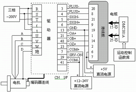 在數(shù)控沖床的單軸送料系統(tǒng)中,要求執(zhí)行電機的空載響應(yīng)時間在40—60ms以內(nèi)。而步進電機的響應(yīng)時間(一般在200ms左右)不能滿足該系統(tǒng)快速響應(yīng)的要求,故本系統(tǒng)選用松下公司交流伺服電機MSMA750W和DMC301A分別作為執(zhí)行電機和上位控制器。