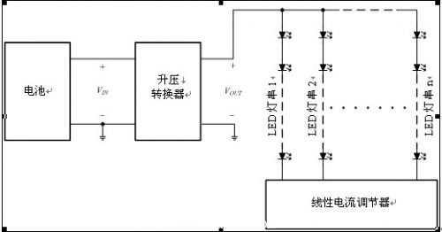 近年來,采用LED燈串為汽車提供LCD面板背光越來越普遍。使用LED的好處包括快速的響應(yīng)時(shí)間、更高的對(duì)比度和更低的功耗??刂芁ED燈串的LED驅(qū)動(dòng)器一般由汽車電池供電,為簡(jiǎn)化LED的光學(xué)和散熱設(shè)計(jì),每個(gè)燈串中的LED數(shù)量一般不多于6個(gè)。對(duì)于標(biāo)稱電壓為12V的電池,帶有線性穩(wěn)流器的升壓轉(zhuǎn)換器(如圖1所示)可實(shí)現(xiàn)此功能。