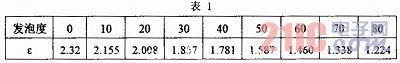 對于發(fā)泡電纜,ε與發(fā)泡度有直接聯(lián)系,PE材料發(fā)泡度與電容的關(guān)系參見表1。