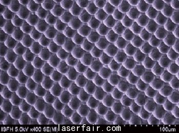 通過對(duì)SiNx凸刻蝕層(包含準(zhǔn)分子激光燒蝕形成的精確的10祄直徑小孔)進(jìn)行刻蝕,得到了點(diǎn)距為20祄的規(guī)則圖案[5]。