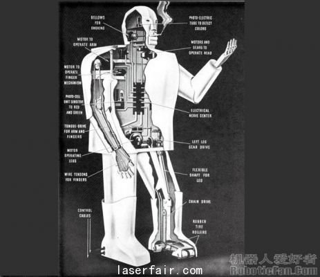 圖為1939年西屋電氣公司制造的家用機器人Elektro