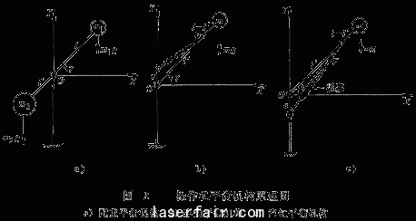 (1)最小運(yùn)動(dòng)慣量原則 由于操作機(jī)運(yùn)動(dòng)部件多,運(yùn)動(dòng)狀態(tài)經(jīng)常改變,必然產(chǎn)生沖擊和振動(dòng),采用最小運(yùn)動(dòng)慣量原則,可增加操作機(jī)運(yùn)動(dòng)平穩(wěn)性,提高操作機(jī)動(dòng)力學(xué)特性。為此,在設(shè)計(jì)時(shí)應(yīng)注意在滿足強(qiáng)度和剛度的前提下,盡量減小運(yùn)動(dòng)部件的質(zhì)量,并注意運(yùn)動(dòng)部件對(duì)轉(zhuǎn)軸的質(zhì)心配置。