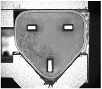 在自動(dòng)化的生產(chǎn)線上,有很多情況下,產(chǎn)品是無規(guī)則的排列,為了提高生產(chǎn)效率就要求機(jī)器人準(zhǔn)確迅速的找到產(chǎn)品的位置,從而進(jìn)行準(zhǔn)確的抓取,進(jìn)行下一步工位的操作。如圖所示為一個(gè)機(jī)械加工的零部件,從傳送帶上自動(dòng)的輸送到機(jī)械手的抓取范圍內(nèi)。通過機(jī)器視覺自動(dòng)捕捉到零部件的中心點(diǎn),發(fā)送給機(jī)器人的控制系統(tǒng),由于該產(chǎn)品是一個(gè)中心對(duì)稱的產(chǎn)品,因此只需要定位該產(chǎn)品的中心位置即可。