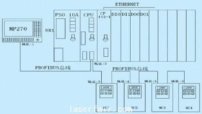 結(jié)晶器調(diào)寬plc系統(tǒng)作為連鑄機(jī)l1系統(tǒng)的一個(gè)子系統(tǒng),其系統(tǒng)設(shè)計(jì)本著可靠、先進(jìn)、開放的原則,綜合考慮系統(tǒng)的性能價(jià)格比,根據(jù)工藝方案和機(jī)械設(shè)備條件,系統(tǒng)結(jié)構(gòu)盡可能統(tǒng)一,同時(shí)應(yīng)與其它l1級(jí)子系統(tǒng)保持一致。連鑄l1級(jí)plc系統(tǒng)選用的是siemens s7-400系列plc。根據(jù)調(diào)寬工藝性能要求,plc系統(tǒng)cpu 選擇s7-414-3,通過cp443通訊模塊與l1級(jí)工業(yè)以太網(wǎng)通訊,也可以通過profibus-dp接口與mc運(yùn)動(dòng)控制器和tp270通訊。#p#分頁(yè)標(biāo)題#e#