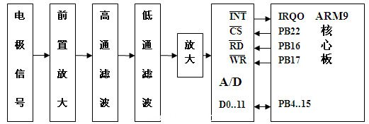 由于電磁流量儀表的電極輸出信號非常微弱,一般只0—10mV數(shù)量級,而且,工業(yè)環(huán)境干擾非常大。因此,為了保證測量精度,送入 A/D 轉(zhuǎn)換的輸入信號應(yīng)達到- 215~+ 215V 的范圍,其模擬部分電壓增益應(yīng)該在60dB以上。其中,前置放大器采用差分輸入的儀表用放大器AD620,高通濾波和低通濾波采用二階有源濾波器形成帶通濾波器濾除工頻干擾及雜波,放大器采用運放CA3240A完成。A/D 轉(zhuǎn)換單元采用 MAX1297AEEG實現(xiàn) 12位并行模數(shù)轉(zhuǎn)換,直接與核心板的I/O線連接。