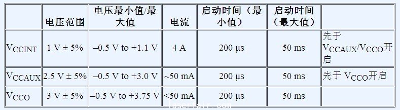 The 如前所述,Virtex-5要求同步電壓跟蹤。此外,電源必須在特定的建議工作容差范圍內(nèi),而且必須在特定的dV/dt范圍內(nèi)上升和下降。