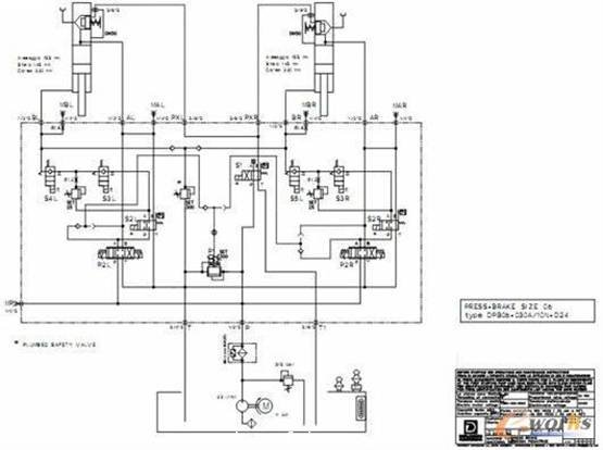 數(shù)控折彎機(jī)主要為上活塞式壓機(jī),其主要工作特點(diǎn)是,由兩只平行運(yùn)動的工作液壓缸形成垂直向下的壓力,以驅(qū)動折彎梁上的模具進(jìn)行折彎工作。其數(shù)控式迪普馬液壓控制系統(tǒng),主要是控制折彎過程的同步運(yùn)行和液壓缸在機(jī)器滿負(fù)荷工作時在下死點(diǎn)的定位。