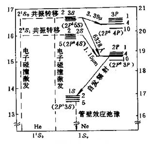 圖(2) 與激光躍遷有關(guān)的#p#分頁標(biāo)題#e#Ne原子的部分能級(jí)圖