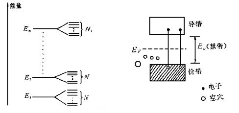 熱平衡時,電子在能帶中的分布不再服從玻爾茲曼分布,而服從費(fèi)米分布,能級E被電子占據(jù)的幾率為