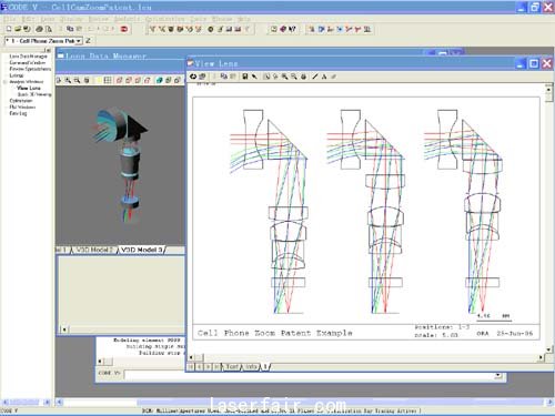 CODE V提供了多重結(jié)構(gòu)(廣義變焦)同時(shí)優(yōu)化的能力。多重結(jié)構(gòu)指光學(xué)系統(tǒng)在設(shè)計(jì)過程中有一個(gè)或多個(gè)參數(shù)變化,這些參數(shù)可以是鏡片之間的距離,鏡片的半徑、材料,也可以是設(shè)計(jì)波長(zhǎng),光瞳大小,視場(chǎng)范圍等。參數(shù)在每個(gè)不同的值時(shí)系統(tǒng)稱為一重結(jié)構(gòu)。當(dāng)變化的參數(shù)僅為鏡片之間的空氣間隔時(shí)就是傳統(tǒng)的變焦鏡頭(狹義變焦)。 比較常見的多重結(jié)構(gòu)有插入拔出元件系統(tǒng)(比如光路分光系統(tǒng)和在平行光路中起變倍作用的伽利略望遠(yuǎn)系統(tǒng))、分色系統(tǒng)(波長(zhǎng)作為變化)、掃描系統(tǒng)(元件的空間角度位置作為變化)、頭盔顯示系統(tǒng)(觀察眼的位置作為變化)。CODEV在設(shè)計(jì)這些多重結(jié)構(gòu)的光學(xué)系統(tǒng)時(shí),可以設(shè)置99重結(jié)構(gòu),最重要的是可以同時(shí)分析和優(yōu)化所有的結(jié)構(gòu),避免了系統(tǒng)在某種參數(shù)時(shí)成像質(zhì)量很好,但在參數(shù)變化時(shí)成像質(zhì)量很差的情形。對(duì)于傳統(tǒng)的變焦鏡頭,在整個(gè)變焦過程中則可以保持成像質(zhì)量平穩(wěn)。上圖為手機(jī)變焦鏡頭多重結(jié)構(gòu)同時(shí)優(yōu)化示例。