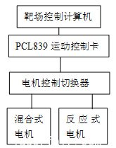 靶場控制計(jì)算機(jī)通過PCL839運(yùn)動控制卡將控制信號分解,傳輸給電機(jī)控制切換器(自行研制),電機(jī)控制切換器細(xì)分控制信號(地址信號和脈沖數(shù)),然后將電平信號以及相應(yīng)的脈沖數(shù)送到目的電機(jī),以驅(qū)動電機(jī)。