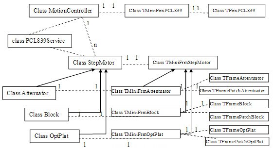 電機(jī)對象類之間的關(guān)系如圖2。MotionController:對PCL839卡封裝;StepMotor:同MotionController是多對一的Client/Service關(guān)系。MotionController