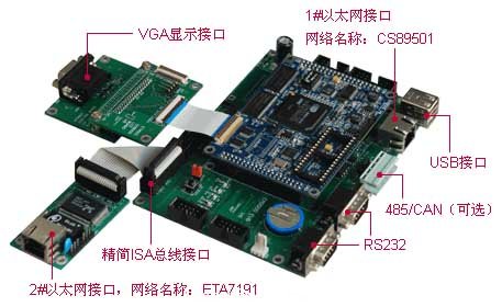 英創(chuàng)公司的嵌入式網(wǎng)絡(luò)模塊產(chǎn)品EM9000和EM9260,以高性能ARM9為CPU,預(yù)裝Windows CE操作系統(tǒng),主要應(yīng)用于工業(yè)自動(dòng)化領(lǐng)域。 EM9000和EM9260均帶有一個(gè)100M以太網(wǎng)接口,可滿足大多數(shù)工業(yè)網(wǎng)絡(luò)應(yīng)用的需求。對(duì)雙網(wǎng)絡(luò)應(yīng)用的需求,在硬件上可以利用英創(chuàng)模塊的精簡(jiǎn)ISA 擴(kuò)展總線,在用戶的應(yīng)用底板上擴(kuò)展第二個(gè)以太網(wǎng)接口,更簡(jiǎn)單的方法是在ISA總線上直接連接英創(chuàng)公司成熟的以太網(wǎng)擴(kuò)展模塊ETA719,如圖1所示,就可快速實(shí)現(xiàn)具有雙以太網(wǎng)接口功能的硬件環(huán)境。