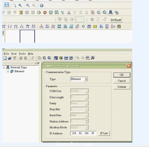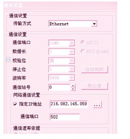 (1)在pc2上打開wpl軟件,在通訊設(shè)置中,選擇“ethernet”,選擇指定ip為adsl的ip地址:218.82.145.059。如果該ip地址下連接了多臺設(shè)備(rs485),則可通過圖8中的通訊站號來區(qū)分??蓪崿F(xiàn)分別對各臺設(shè)備進(jìn)行監(jiān)控操作。