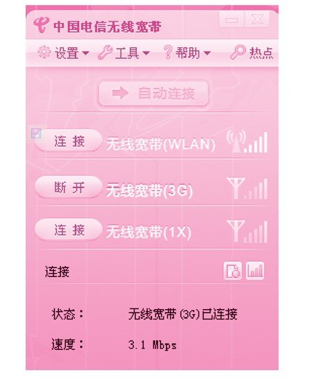 (2)在pc2上打開3g網(wǎng)絡(luò),網(wǎng)絡(luò)連接如圖7所示。