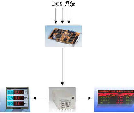 在電廠控制系統(tǒng)中DCS占有巨大的市場份額,但隨著客戶對控制系統(tǒng)的要求越來越高,DCS的不足逐漸暴露出來.由于DCS系統(tǒng)的封閉性,導(dǎo)致部分過程控制無法分離,并使操作人員無法實現(xiàn)對數(shù)據(jù)的實時監(jiān)控.為了滿足客戶的需求,我公司通過工控機和組態(tài)軟件的形式,連接上LED大屏幕的顯示終端,實現(xiàn)了對重要參數(shù)的實時監(jiān)控,保證了生產(chǎn)的安全可靠.隨著應(yīng)用的廣泛推廣,該系統(tǒng)已經(jīng)得到客戶的認可.