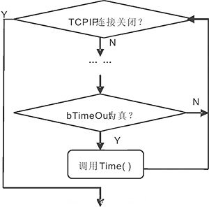 圖2程序主流程是一個大循環(huán),在循環(huán)中處理發(fā)送數(shù)據(jù)包等應用層協(xié)議同時查詢變量bTimeOut,在定時中斷中將bTimerOut設置為真,應用層在程序流程中反復查詢bTimerOut是否為真,真則調(diào)用Timer(),然后置bTimerOut為假。
