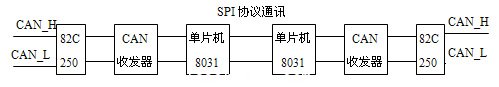 具體實(shí)現(xiàn)思路:?jiǎn)纹瑱C(jī)接收CAN總線數(shù)據(jù),把數(shù)據(jù)進(jìn)行緩存,在空閑階段把數(shù)據(jù)傳輸?shù)搅硪粋€(gè)單片機(jī)(兩者之間通過SPI協(xié)議實(shí)現(xiàn)通信),同時(shí)把從另一個(gè)單片機(jī)傳輸來的數(shù)據(jù)發(fā)送出去。