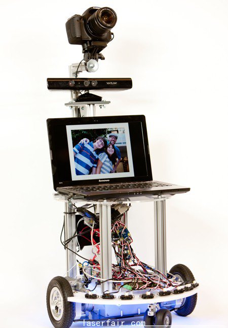 去年,一個(gè)奇怪的裝飾開始出現(xiàn)在許多機(jī)器人頭上,這就是現(xiàn)在流行的微軟Kinect 3D傳感器,它價(jià)格便宜且使用方便,用Kinect繪制3D地圖和作為動(dòng)作傳感器,Kinect成為機(jī)器人社區(qū)的最愛(看下圖)。人們一直在尋找一種低成本的設(shè)備替代激光測(cè)距儀,現(xiàn)在Kinect幫忙實(shí)現(xiàn)(至少可以在室內(nèi)使用),Kinect 2可能會(huì)在今年發(fā)布,將具有更高的分辨率和幀速率。