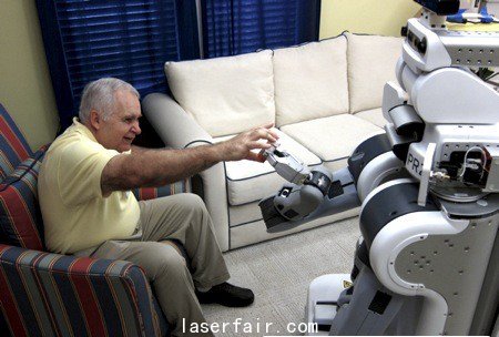 機(jī)器人控制通常有兩種方式,直接遙控和充分自我控制,問題是遙控很麻煩,充分自我控制往往如科幻電影??梢詮闹姓业揭粋€(gè)平衡點(diǎn),讓人類和機(jī)器人協(xié)作完成任務(wù),比如下圖的PR2機(jī)器人遞藥給人。美國(guó)國(guó)家機(jī)器人倡議(NRL)提供7000萬發(fā)展協(xié)作機(jī)器人項(xiàng)目,目標(biāo)是把機(jī)器人從工產(chǎn)和實(shí)驗(yàn)室擴(kuò)展到人們的日常生活,就像當(dāng)年計(jì)算機(jī)由軍用到民用。這些機(jī)器人必須是安全的,價(jià)格相對(duì)便宜且使用方便,機(jī)器人利用其長(zhǎng)處配合人類完成工作。該項(xiàng)目的范圍是廣泛的,但機(jī)器人的一個(gè)關(guān)鍵方面是明確的:即與人的互動(dòng)。所以希望看到2012協(xié)作類機(jī)器人有更大發(fā)展。