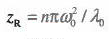 通常的,如果知道激光中心波長,透鏡的焦距f和入射光在透鏡前表面處的束腰半徑ω,就可以得到瑞利長度ZR,瑞利長度的表達式為: