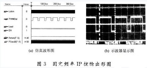 END IF;   END IF;   軟核的仿真波形及示波器輸出波形如圖3所示。