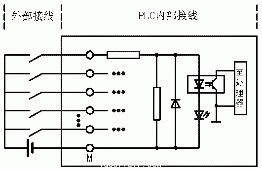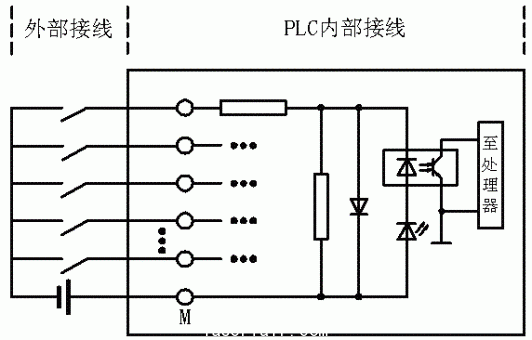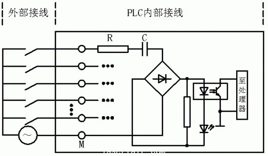 我們知道,PLC 數(shù)字輸入模塊為了防止外界線路產(chǎn)生的干擾(如尖峰電壓,干擾噪聲等)引起PLC 的非正常工作甚至是元器件的損壞,一般在PLC 的輸入側(cè)都采用光耦,來切斷PLC 內(nèi)部線路和外部線路電氣上的聯(lián)系,保證PLC 的正常工作。并且在輸入線路中都設(shè)有RC 濾波電路,以防止由于輸入點(diǎn)抖動(dòng)或外部干擾脈沖引起的錯(cuò)誤信號。