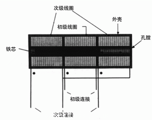 基本LVDT(見圖1)由3個(gè)中孔的軸向?qū)R的固定線圈組成,一個(gè)鐵芯可在孔膛內(nèi)自由移動(dòng)。在鐵芯和孔膛之間有足夠的間隙,防止相互接觸。中心線圈是變壓器初級(jí),由50Hz~10K Hz恒定頻率交流波形驅(qū)動(dòng)。兩側(cè)次級(jí)線圈是反向串聯(lián)繞制的,因而它們的電壓是互相抵消的。