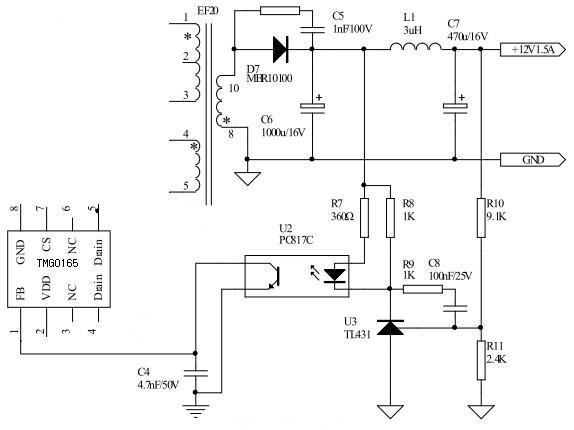 通常光耦與TL431一起使用。下面是led電源驅(qū)動(dòng)芯片(開關(guān)電源芯片)的部分電路。兩電阻串聯(lián)取樣到431R端與內(nèi)部比較器進(jìn)行比較。然后根據(jù)比出的信號(hào)再控制431K端(陽極接光耦那一端)對(duì)地的電阻,然后達(dá)到控制光耦內(nèi)部發(fā)光二極管的亮度。(光耦內(nèi)部一邊是一發(fā)光二極管,一邊是一光敏三極管)通過發(fā)光的強(qiáng)度??刂屏硪欢巳龢O管的CE端的電阻也就是改變了led電源驅(qū)動(dòng)芯片(開關(guān)電源芯片)檢測(cè)腳的電流(1腳:電壓反饋引腳,通過連接光耦到地來調(diào)整占控比)。根據(jù)電流的大小,led電源驅(qū)動(dòng)芯片(開關(guān)電源芯片)就會(huì)自動(dòng)調(diào)整輸出信號(hào)的占空比,達(dá)到穩(wěn)壓的目的。