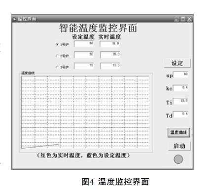 MSComm1.PortOpen= True//打開(kāi)通信端口.計(jì)算機(jī)端的VB程序利用MSComm 控件與S7-200交換數(shù)據(jù),通過(guò)自由口通訊程序從現(xiàn)場(chǎng)采集溫度信號(hào).并且上位機(jī)程序可以設(shè)定初始溫度和PID參數(shù)、顯示動(dòng)態(tài)溫度曲線(xiàn).程序運(yùn)行界面如圖4所示。#p#分頁(yè)標(biāo)題#e#