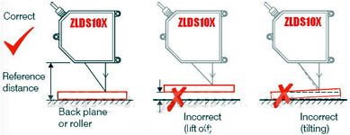 保證測量準(zhǔn)確性的條件是:兩個傳感器發(fā)射光束必須同軸,以及兩個傳感器掃描必須同步(見本文附圖)。同軸是靠安裝實現(xiàn),而同步要靠選擇有同步端激光傳感器。如真尚有ZLDS10X系列激光位移傳感器都有同步端。