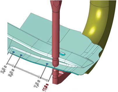 激光步進線焊機用一個長約30~40 mm的焊線可取代傳統(tǒng)點焊機的2個焊點。電阻點焊是一種廣為熟知的焊接技術(shù),在汽車工業(yè)領(lǐng)域中應(yīng)用廣泛。根據(jù)既有的工程標(biāo)準(zhǔn),傳統(tǒng)電阻點焊的焊點間距是30~50 mm,并要保持一定寬度的凸緣。機器人驅(qū)動的傳統(tǒng)點焊系統(tǒng)布置并完成一個焊點平均需要耗費2.5~3 s。激光線焊頭定位和完成一條焊線所需時間與傳統(tǒng)點焊機焊接一個點所需時間相同,因此,用一條新型焊線代替兩個傳統(tǒng)的焊接點可以節(jié)省50%的加工時間。