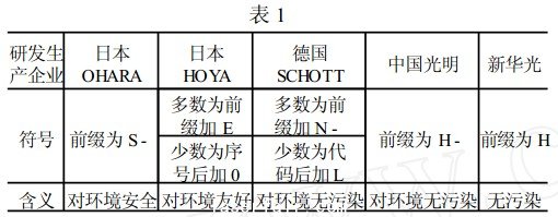 世界上的一些主要公司在環(huán)保光學玻璃方面的一些表示方法如表1所示。