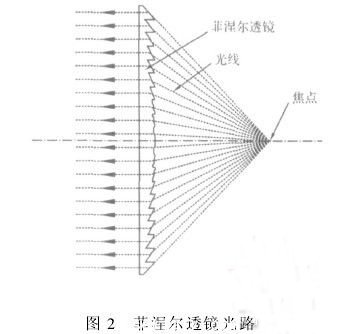 實驗中利用了菲涅爾透鏡的平行聚焦特性,讓點光源從菲涅爾透鏡的焦點發(fā)射,經(jīng)過它之后形成一道平行光幕,如圖2。