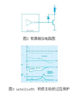 驅(qū)動(dòng)器電子可以通過(guò)有源鉗位直接控制過(guò)電壓,也可以使用intellioff(智能關(guān)斷),一種用于減小臨界電壓尖峰的功能。如圖2,3所示。