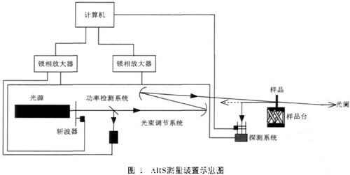 在ARS測(cè)量裝置中,通常以樣品為中心,光電探測(cè)器圍繞樣品在入射平面內(nèi)作接近180°或360°的轉(zhuǎn)動(dòng),從而測(cè)得非入射平面內(nèi)的散射光。樣品一般能轉(zhuǎn)動(dòng)和平動(dòng),以測(cè)量斜入射下的散射特性和掃描樣品上各點(diǎn)的散射系數(shù)。在測(cè)量中,散射信號(hào)很小,通常要采用鎖相放大器。此外,由于測(cè)量數(shù)據(jù)很多,所以常常采用計(jì)算機(jī)進(jìn)行自動(dòng)采集和分析數(shù)據(jù)。圖1即為一種典型的角分辨散射測(cè)量?jī)x器。
