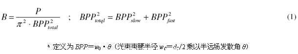 由多個(gè)半導(dǎo)體激光器bar條構(gòu)成的高功率半導(dǎo)體激光器系統(tǒng)的另一缺點(diǎn)在于相對(duì)較差的光束質(zhì)量和亮度B,公式(1)是B的定義。半導(dǎo)體激光器光束的亮度由激光功率P以及慢軸和快軸方向上的光束參數(shù)乘積(BPP)a所確定。[3]