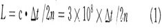 返回的有用信息由OTDR的探測器來測量,它們就作為被測光纖內(nèi)不同位置上的時(shí)間或曲線片斷。根據(jù)發(fā)射信號到返回信號所用的時(shí)間,再確定光在石英物質(zhì)中的速度,就可以計(jì)算出距離(光纖長度)L(單位:m),如式(1)所示。