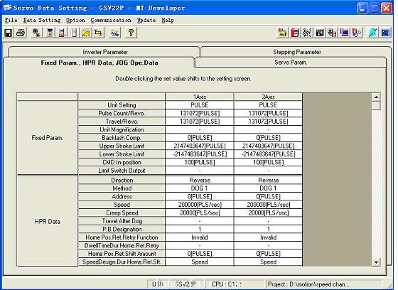 如果有必要,還可以根據(jù)需要進行共享參數(shù)設置,比如系統(tǒng)中有觸摸屏時,就可以在觸摸屏上設定指定軸的速度,通過共享參數(shù)刷新到運動控制器中去,再通過在運動控制器的CHGV中使用被刷新的新速度值存儲軟元件就可以改變指定軸的轉(zhuǎn)速了,如果系統(tǒng)中有AD模塊,也可以用外部模擬量來控制指定軸的轉(zhuǎn)速。